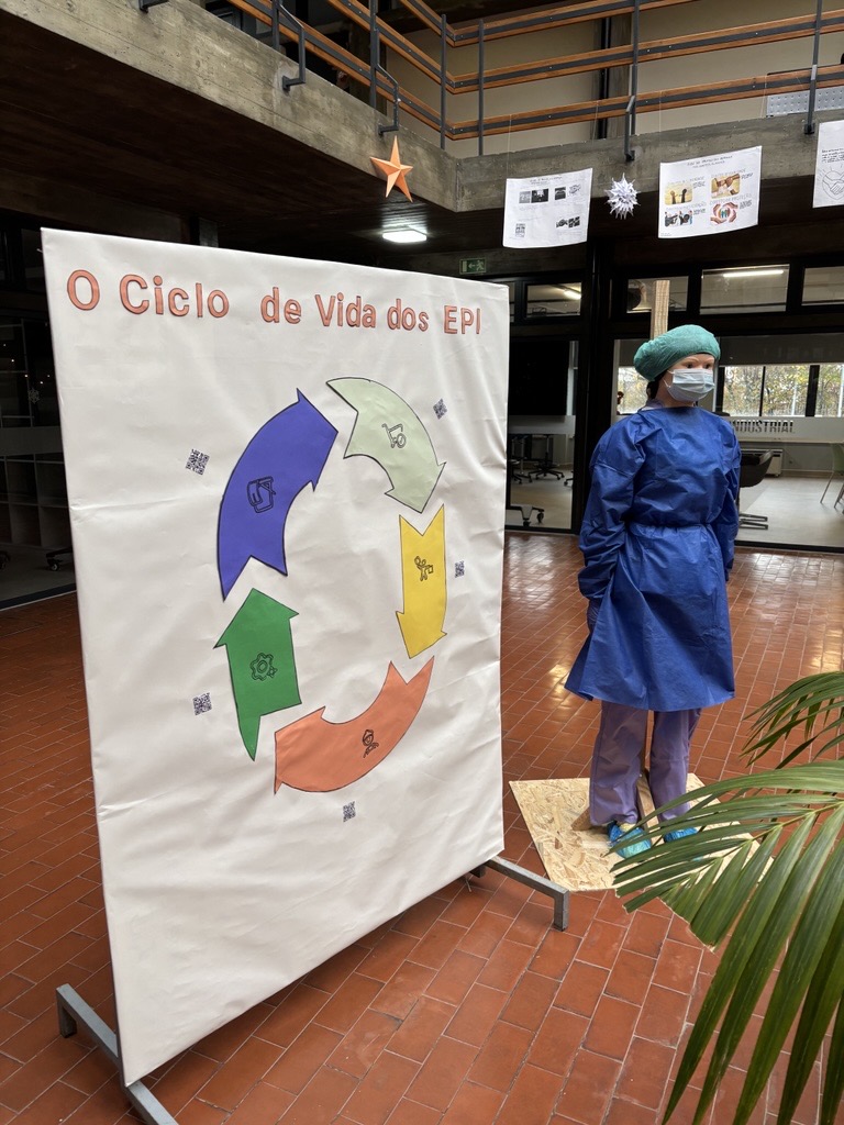 O projeto culminou ainda com uma exposição e demonstração prática dos Equipamentos de Proteção Individual, no átrio do pavilhão A, onde foram apresentados diversos materiais utilizados no contexto da saúde.