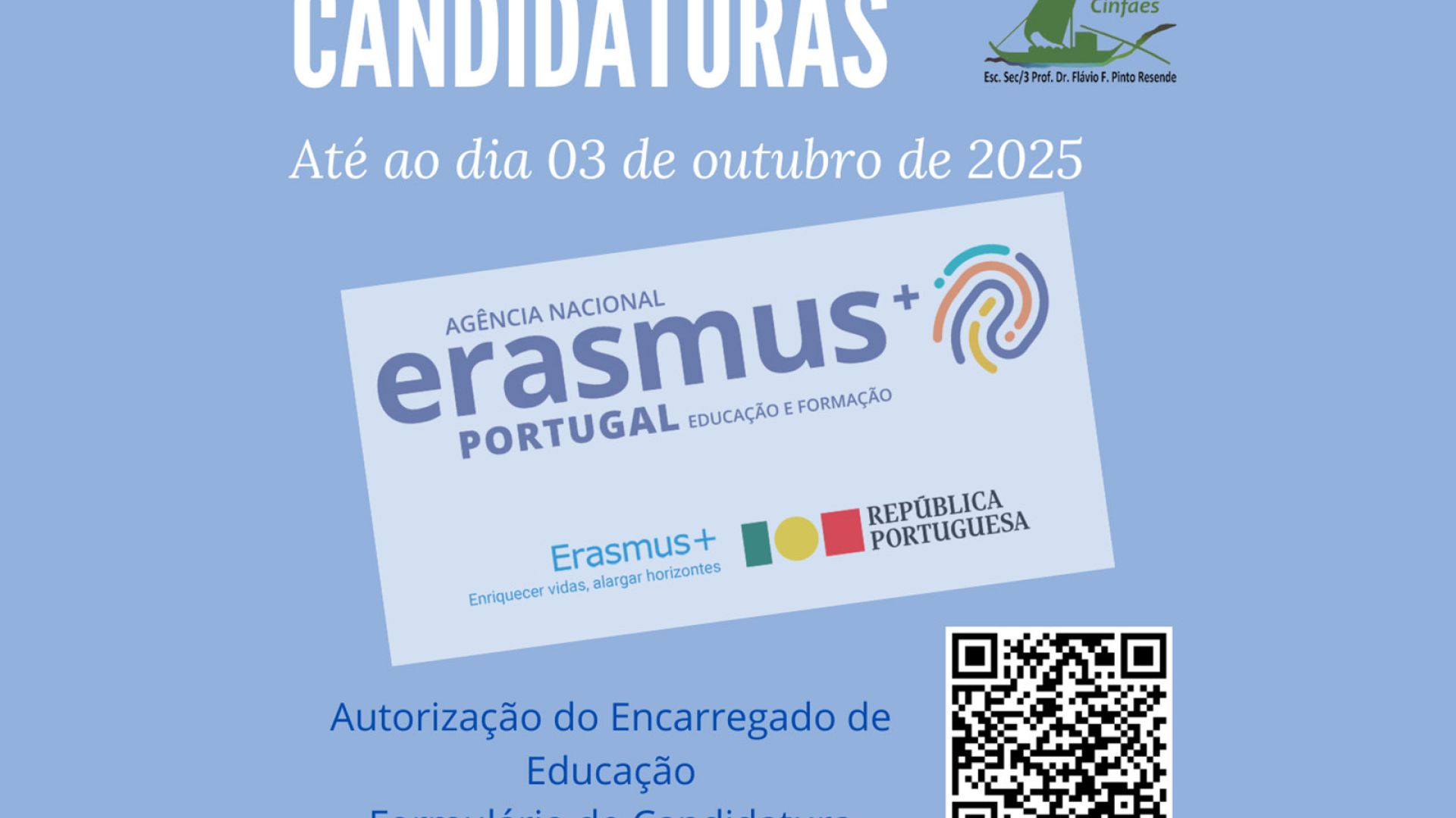 No âmbito do Programa Erasmus+, estão abertas, até às 17h00 do dia 10 de janeiro 2025, as candidaturas para a mobilidade de ALUNOS.