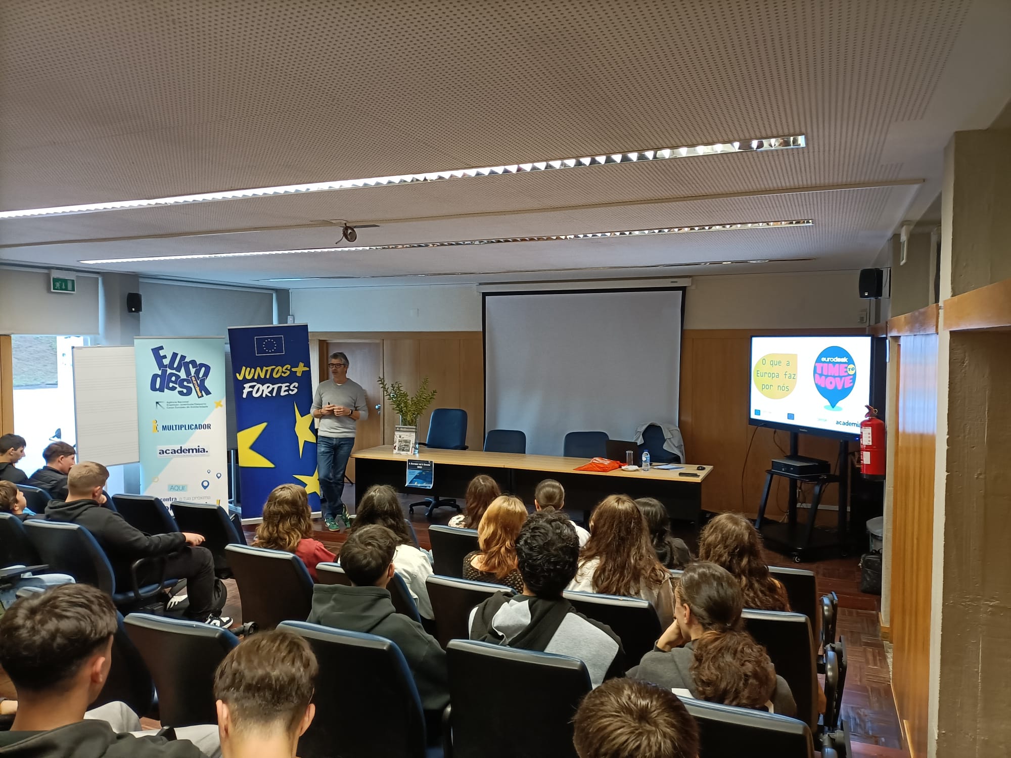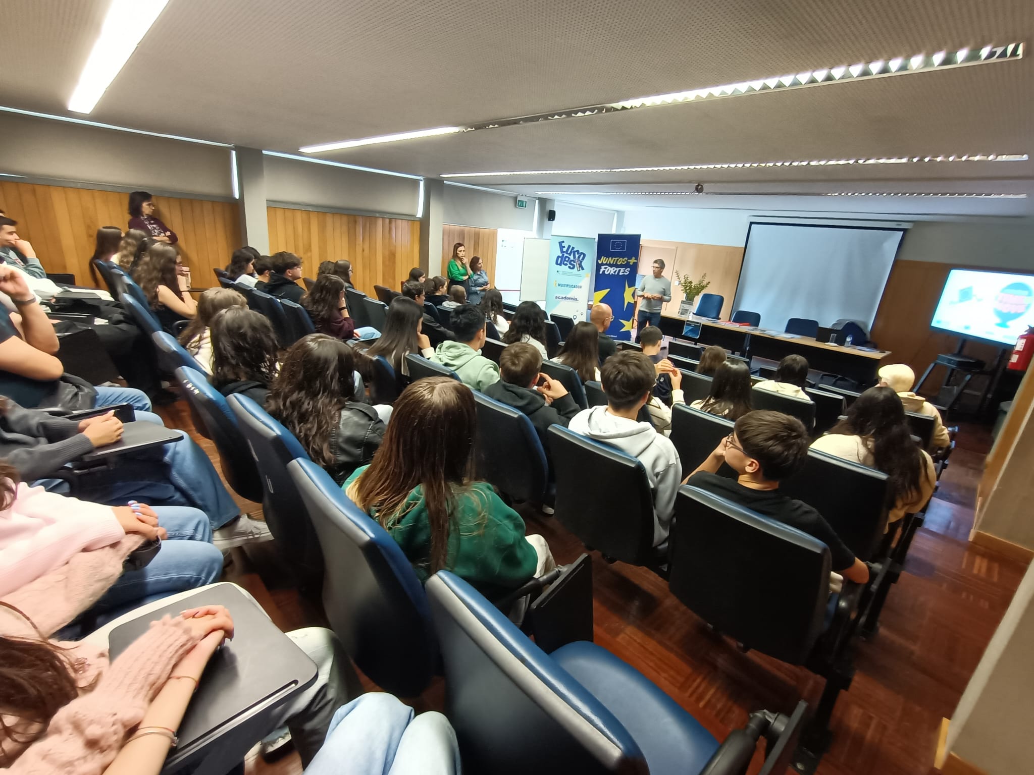 As palestras, enriquecidas com apresentações, animaram o debate e promoveram a reflexão sobre a União Europeia e as suas políticas. Nas sessões foram abordadas questões relacionadas com as mobilidades Erasmus+, DiscoverEU, Corpo Europeu de Solidariedade, carreiras nas instituições da União Europeia e uma viagem pela História da União Europeia, para compreender melhor o caminho percorrido até à Europa de hoje.