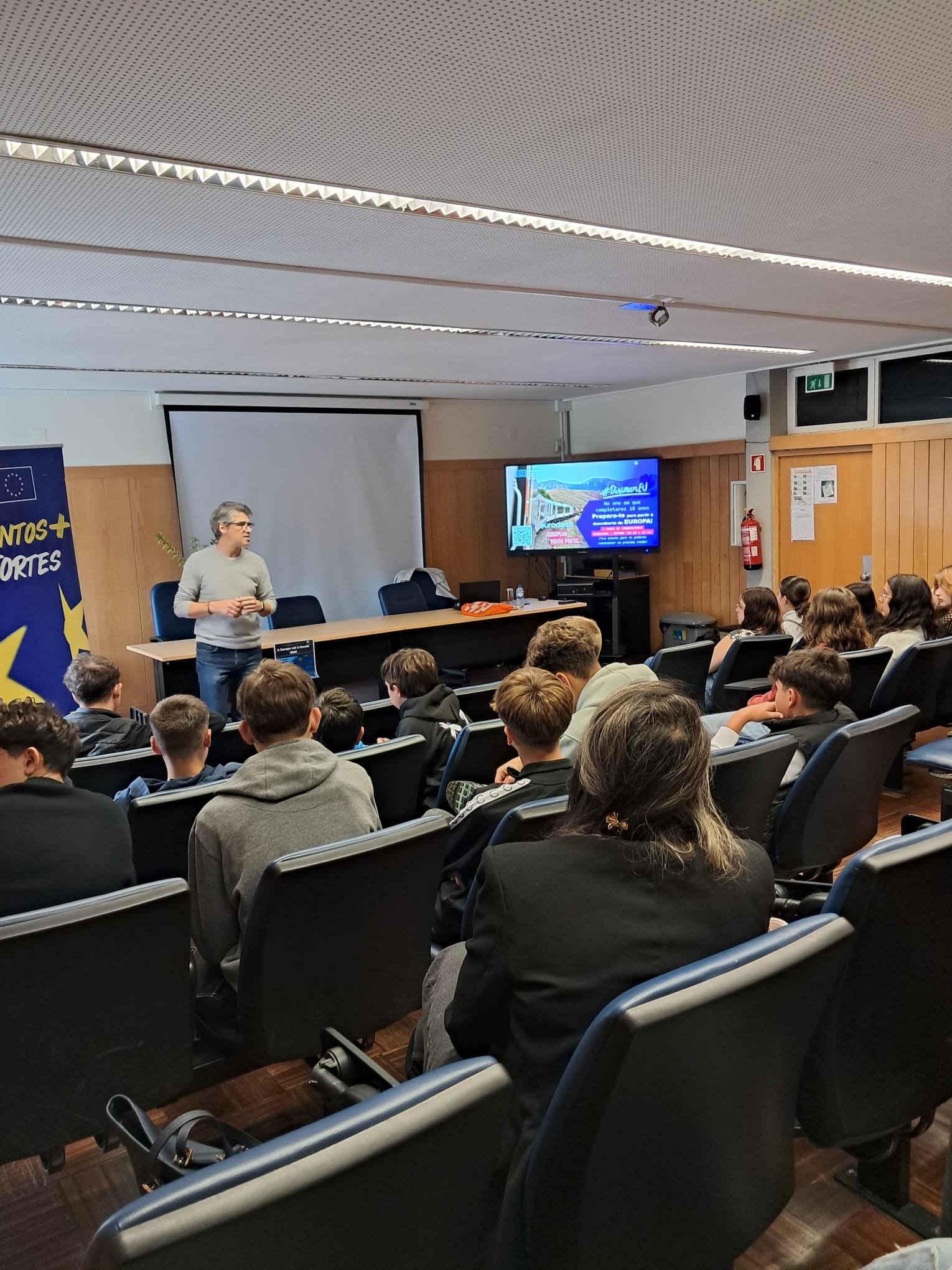 Dia 20 de outubro foi dia de "A Europa [foi] à escola" para as turmas do 10.º ano dos CCH e do 1.º ano dos Cursos Profissionais, distribuídas por duas sessões, conduzidas pelo Professor Jorge Oliveira, do Centro de Informação Europe Direct do Tâmega, Sousa e Alto Tâmega.