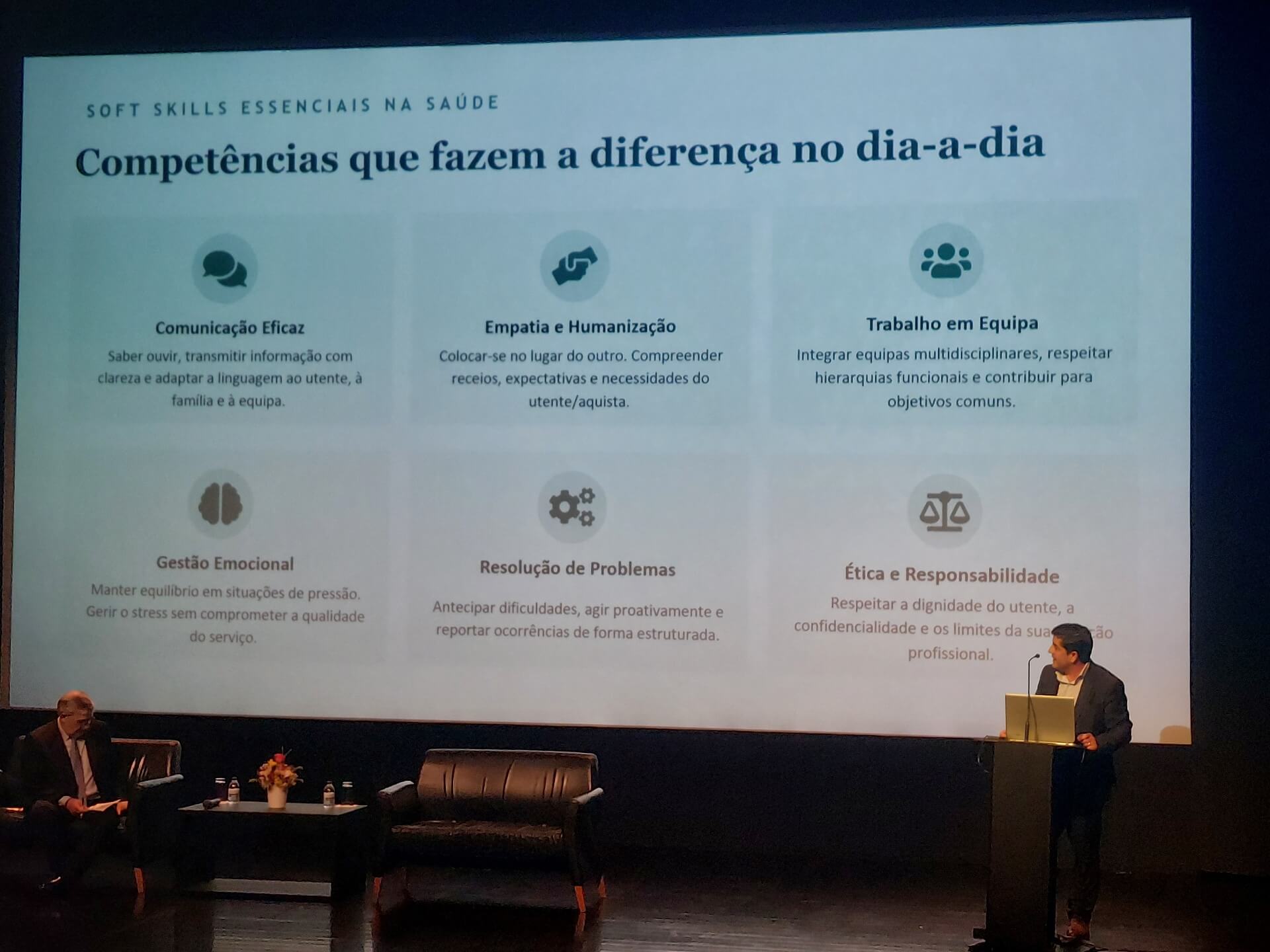 Ao longo do dia, foram dinamizadas várias sessões formativas com temas atuais da área da saúde e com abordagens extremamente pertinentes atendendo ao público-alvo, promovendo a revisão de conteúdos abordados nas aulas e alertando para aspetos concretos do mundo do trabalho, relacionados com o exercício de funções na área da saúde.