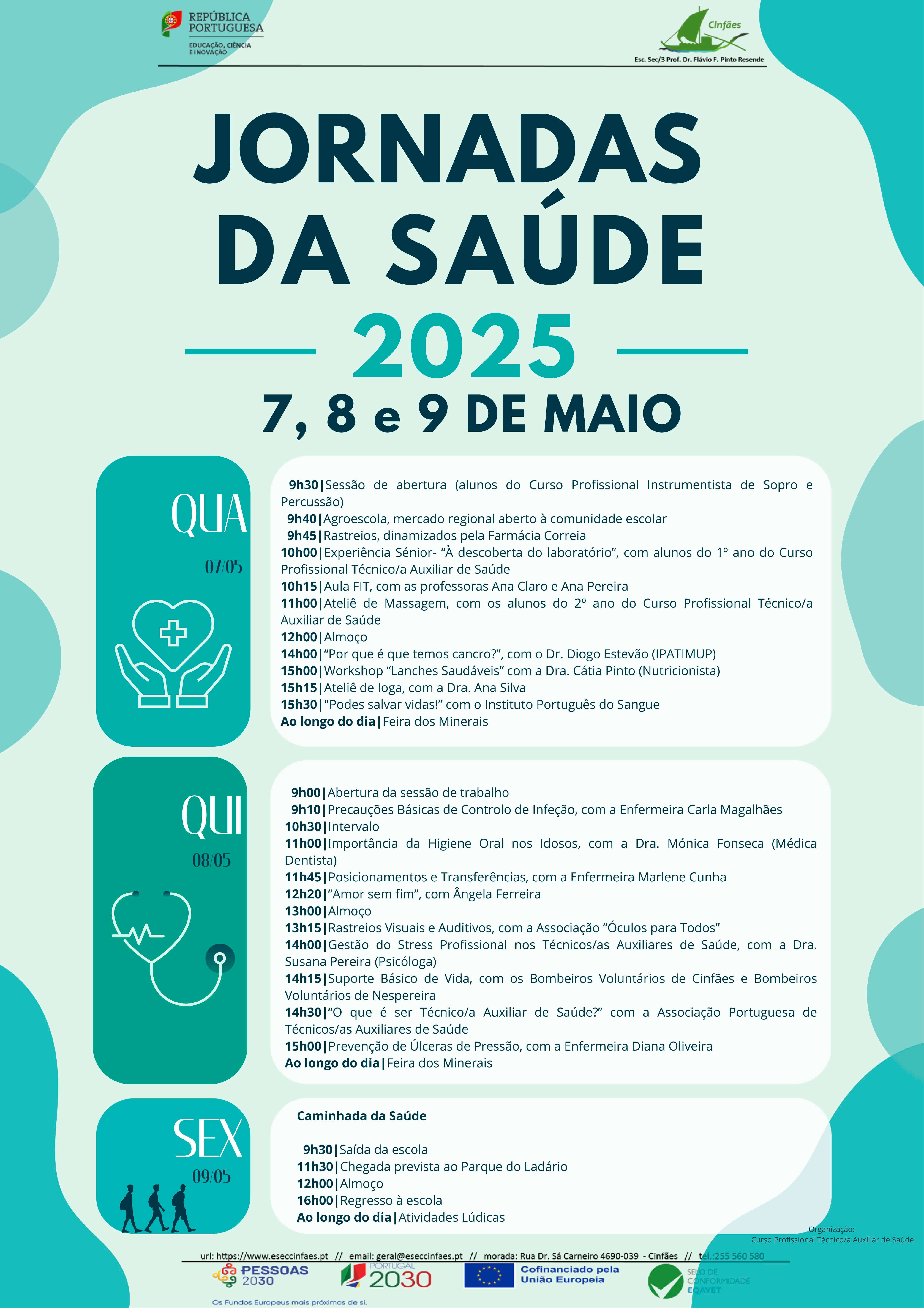 A Escola convida a Comunidade Educativa e, em particular, os Pais e Encarregados de Educação a participar, de 7 a 9 de maio, nas atividades inseridas no Programa das Jornadas da Saúde 2025.