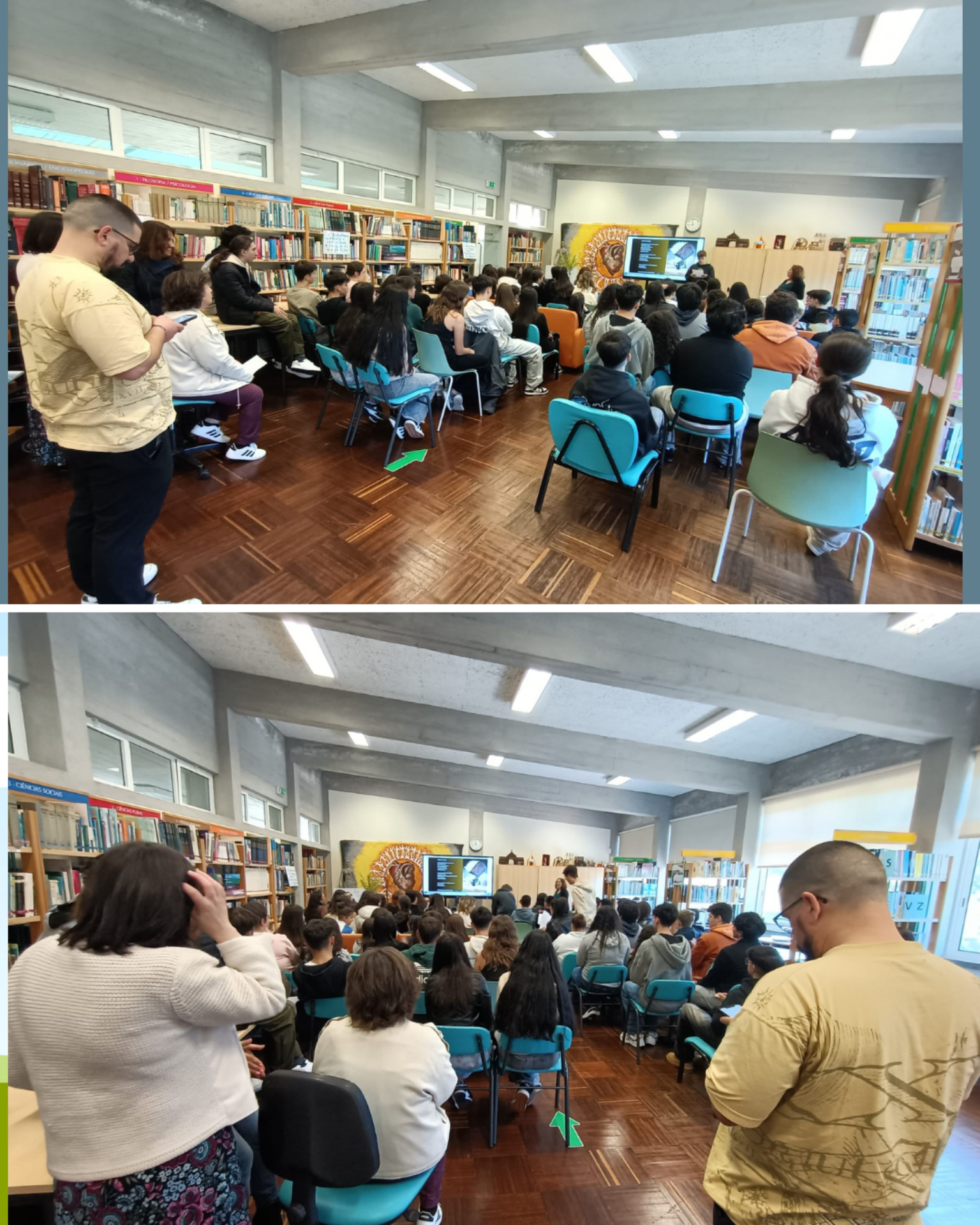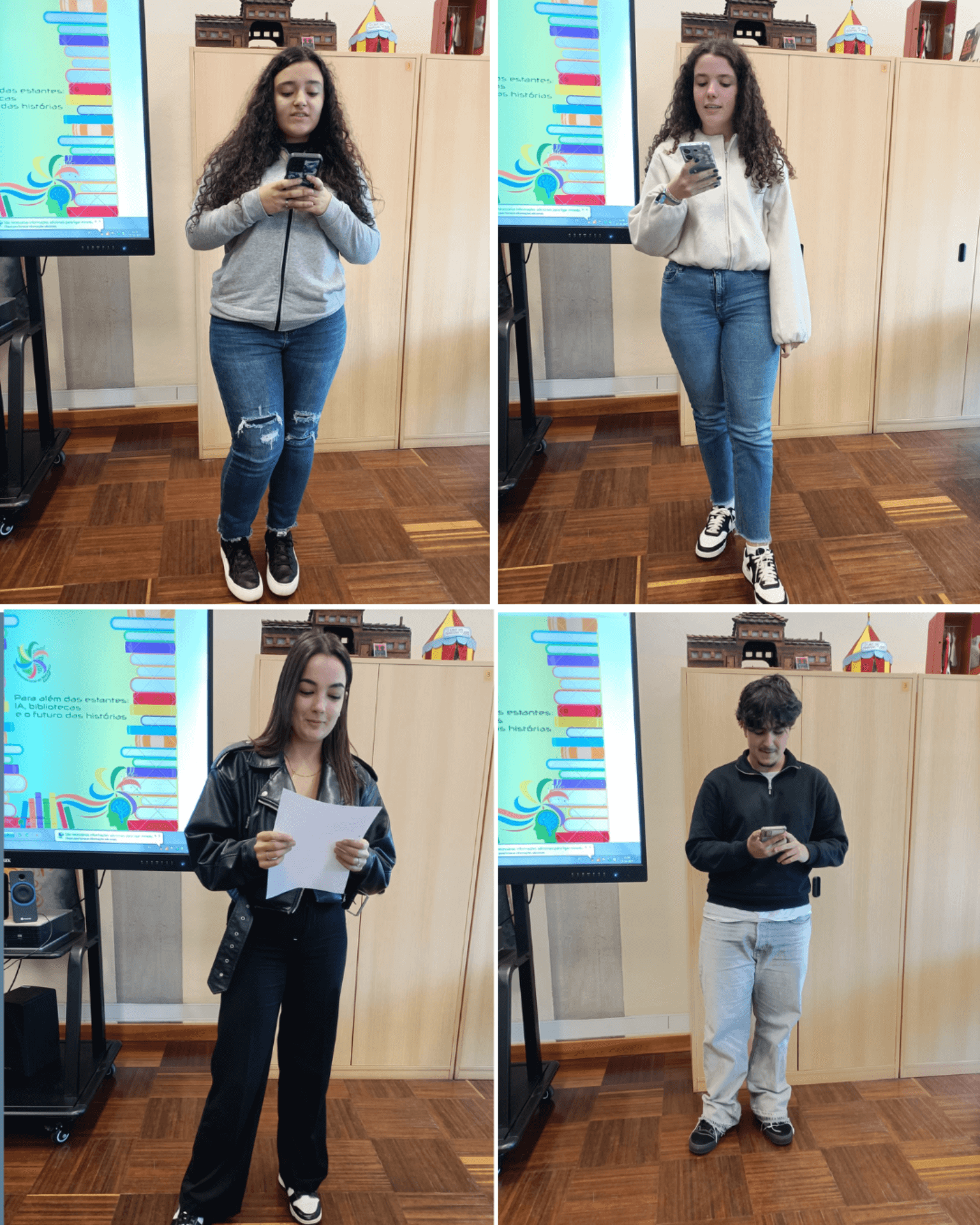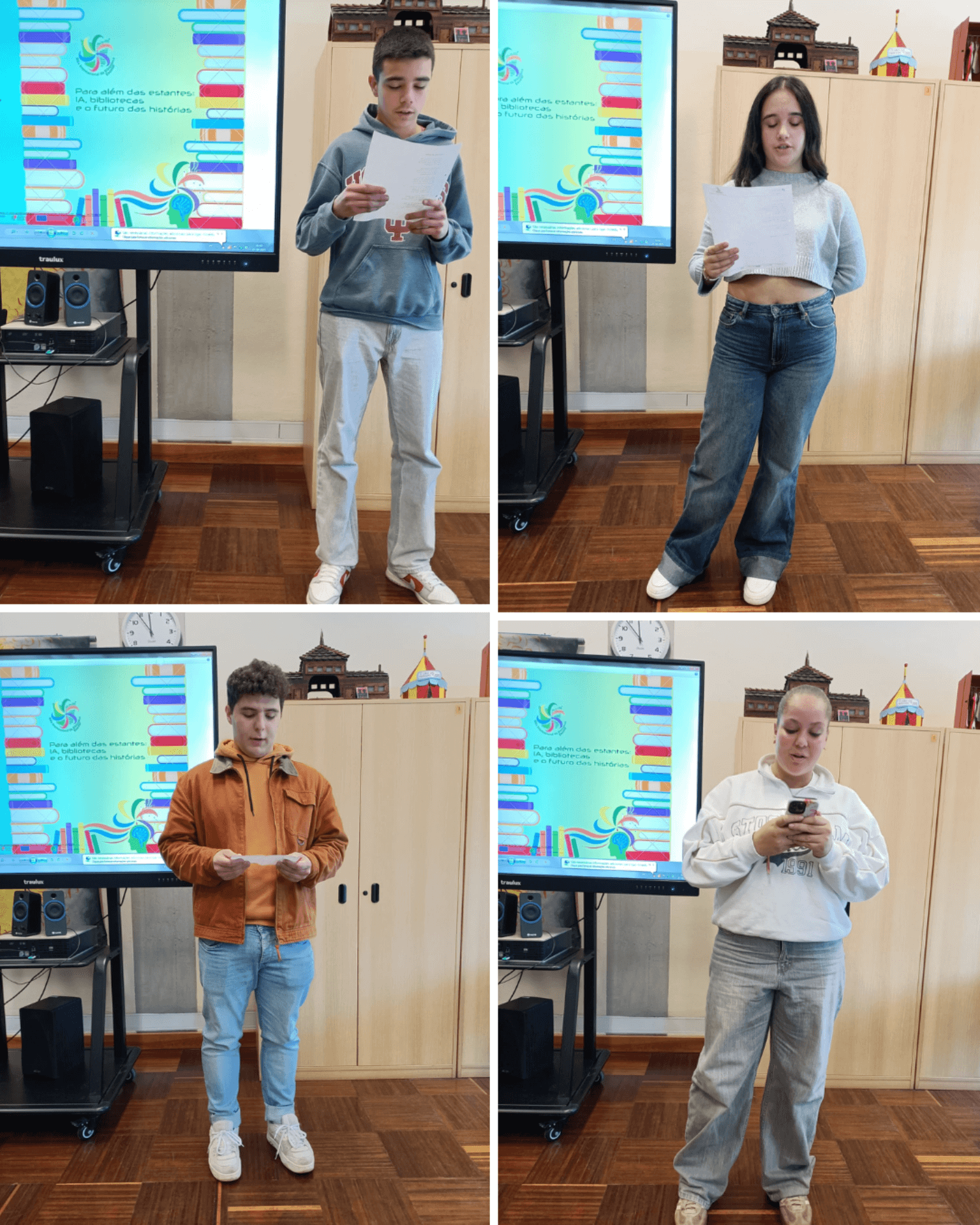 A comemoração ganhou um brilho extra quando duas alunas deram voz aos seus próprios poemas, lembrando-nos de que ler é também escrever com a alma, e escrever é ler o mundo com o coração. Instantes de partilha, emoção e encantamento, em que cada leitura acendeu um brilho novo nos olhos de quem escutava. Saímos de coração cheio, com a certeza de que a literatura continua a ser o caminho mais belo para nos encontrarmos uns aos outros.