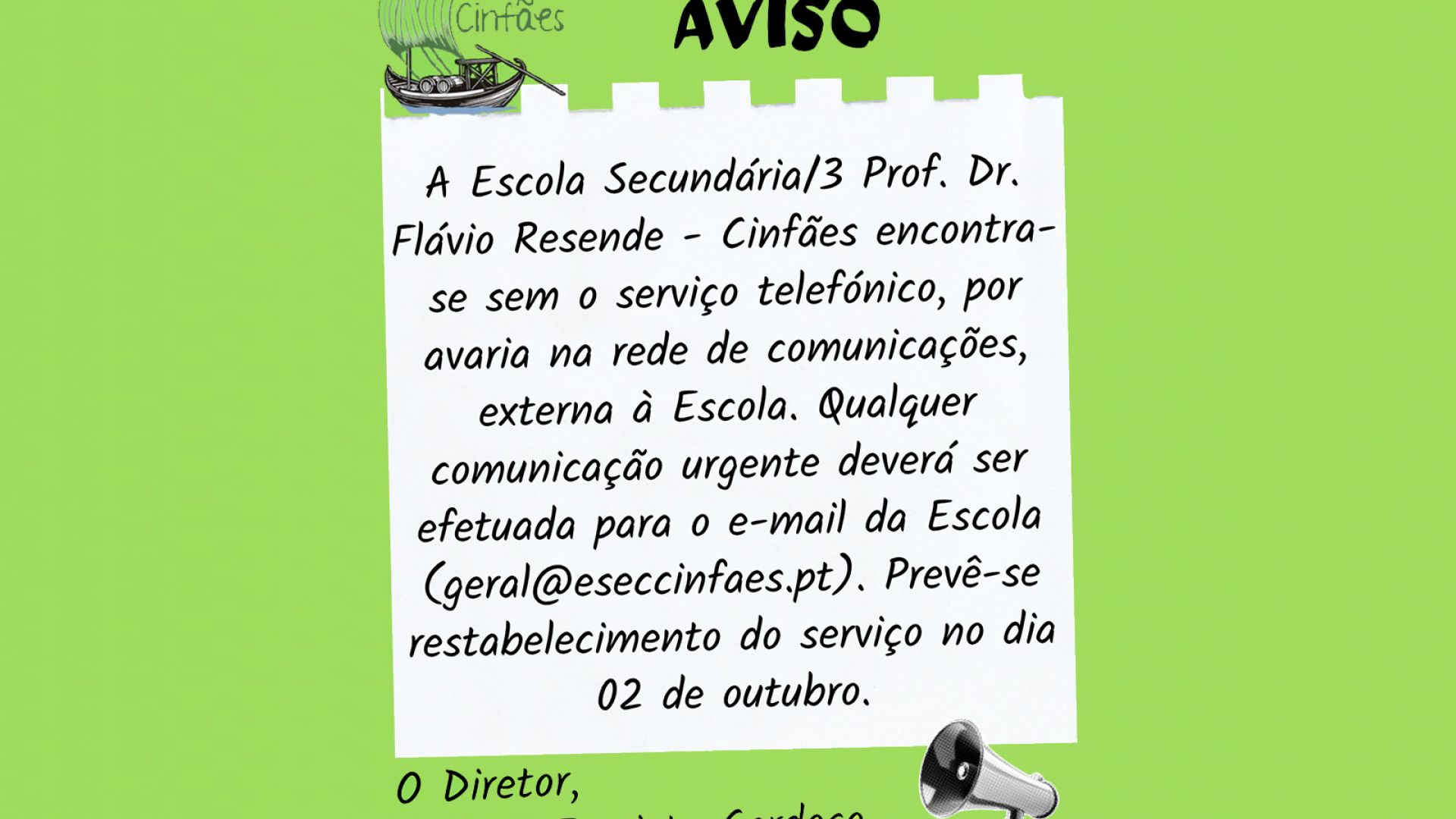 Em nome da Comunidade Escolar, Parabéns e votos de Sucesso para o Sr. Diretor e para a sua Equipa!